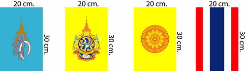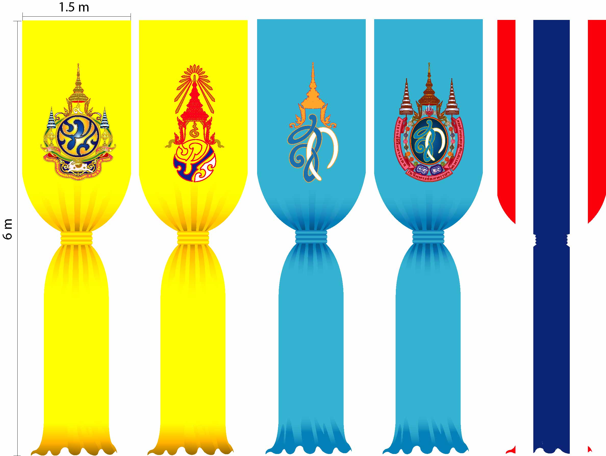 | ธงชาติไทย-ธง ภ.ป.ร. -ธง ส.ก. พรรษา ธงสูงประดับอาคารหรือประดับเสาไฟ แบบเดี่ยว |