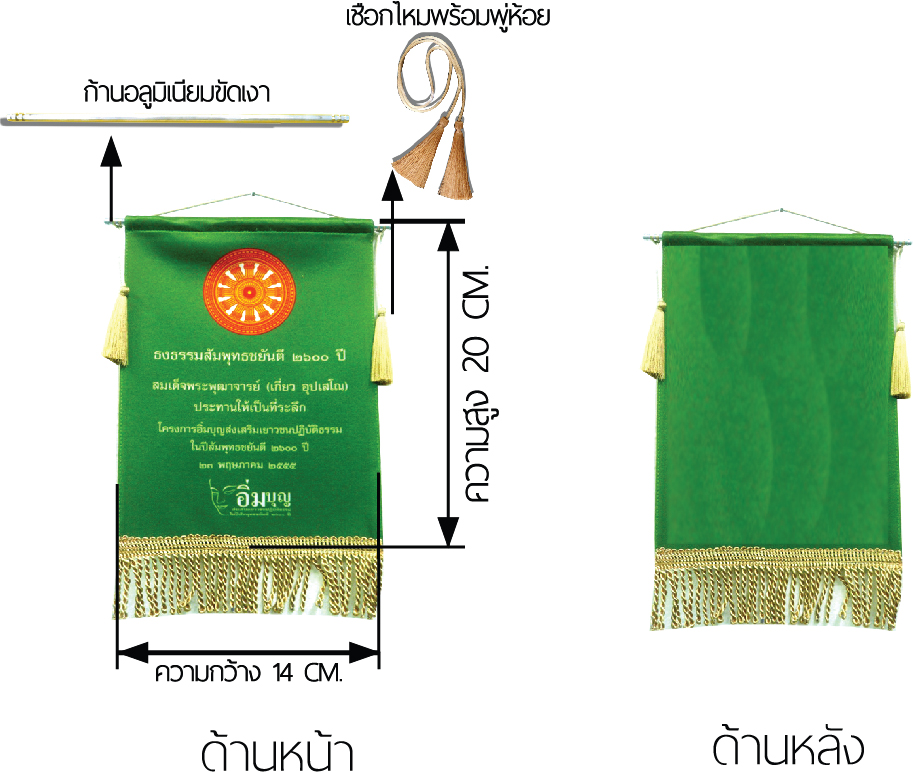 ประกอบ ด้วยตัวธงขนาด กว้าง 14 cm.สูง 20 cm. สามารถพิมพ์โลโก้ได้ 2 ด้าน