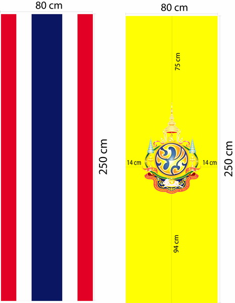 ธงชาติไทย-ธง ภ.ป.ร. 84 พรรษา-ธง ส.ก. 80 พรรษา ธงสูงประดับอาคารหรือประดับเสาไฟ |