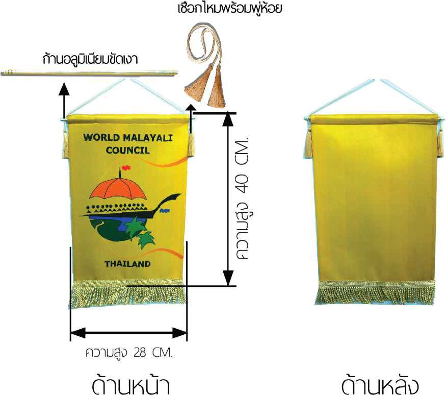 ประกอบ ด้วยตัวธงขนาด กว้าง 28 cm.สูง 40 cm. สามารถพิมพ์โลโก้ได้ 2 ด้าน