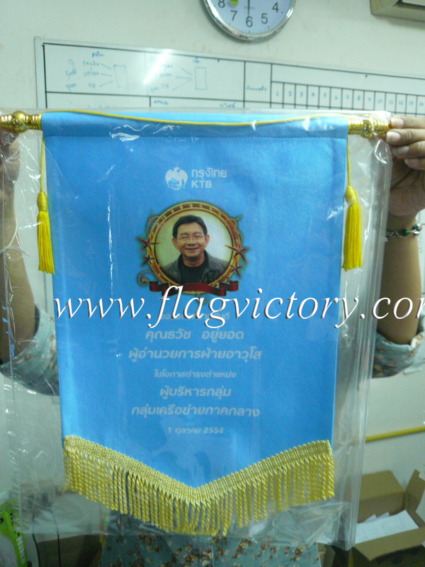 ประกอบ ด้วยตัวธงขนาด กว้าง 28 cm.สูง 40 cm. สามารถพิมพ์โลโก้ได้ 2 ด้าน